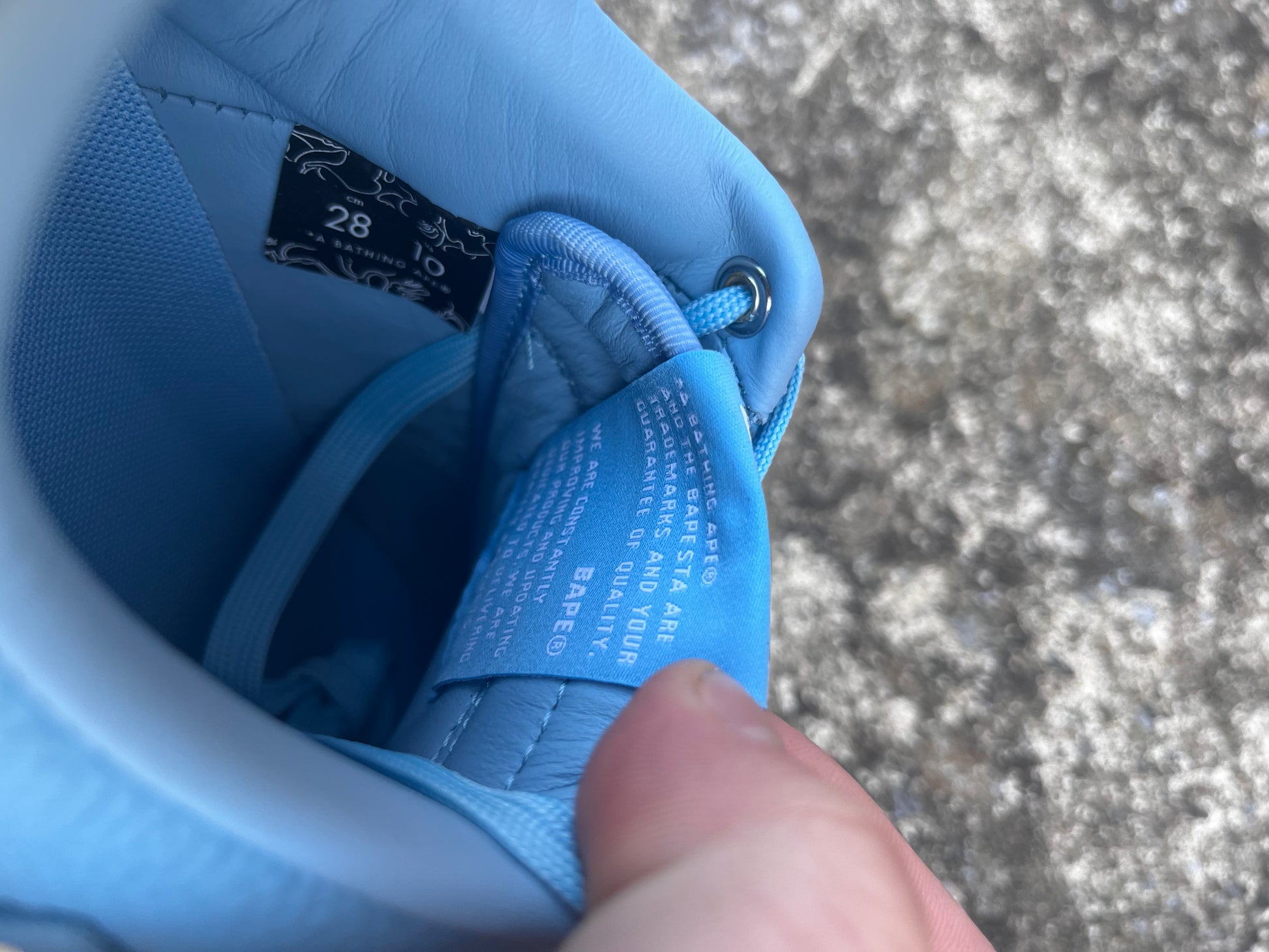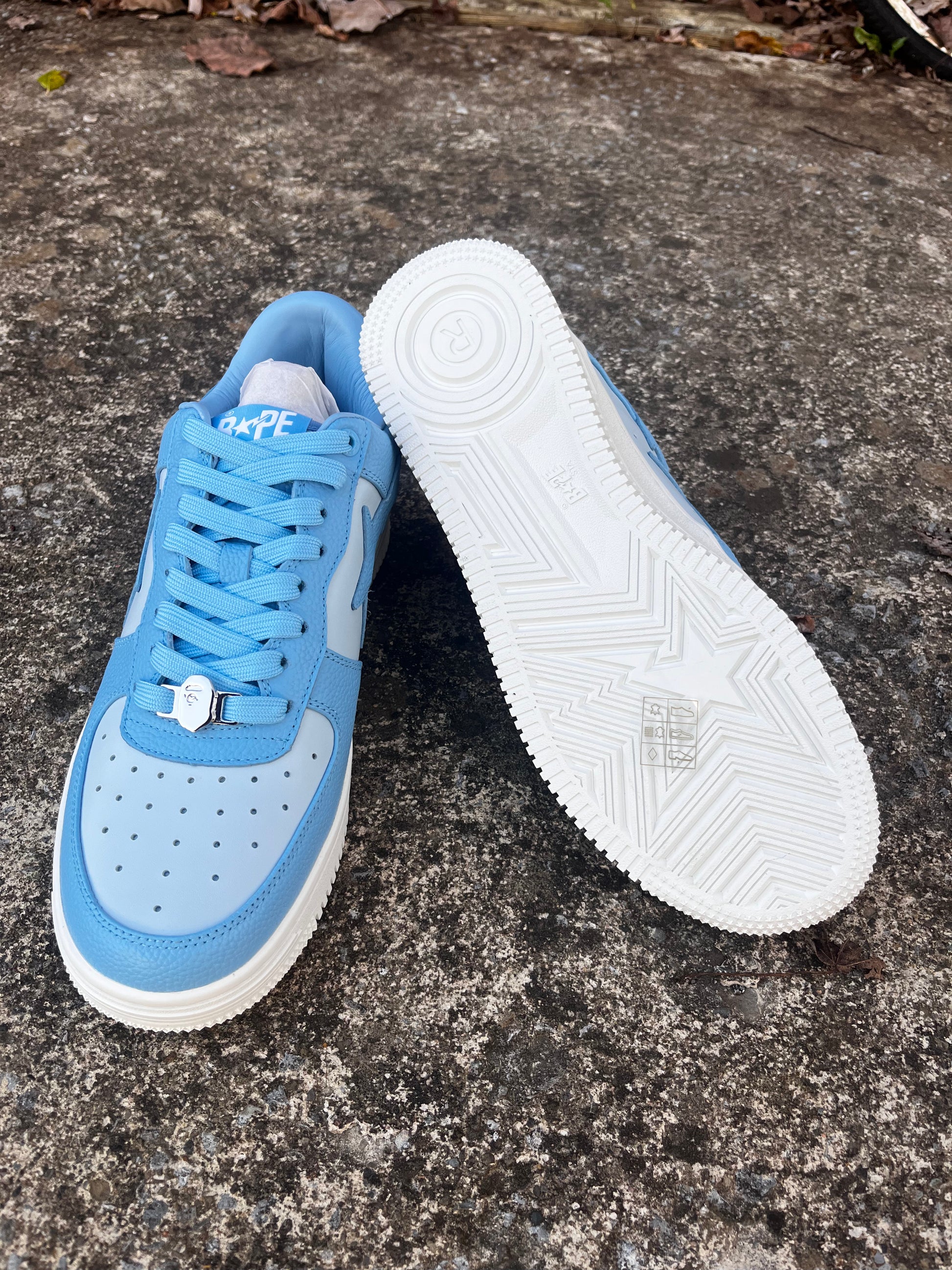 Sick pair of deadstock Bapesta forces in blue. In box with paper inserts still included. Never worn, plastic tags still stuck to bottom.Β