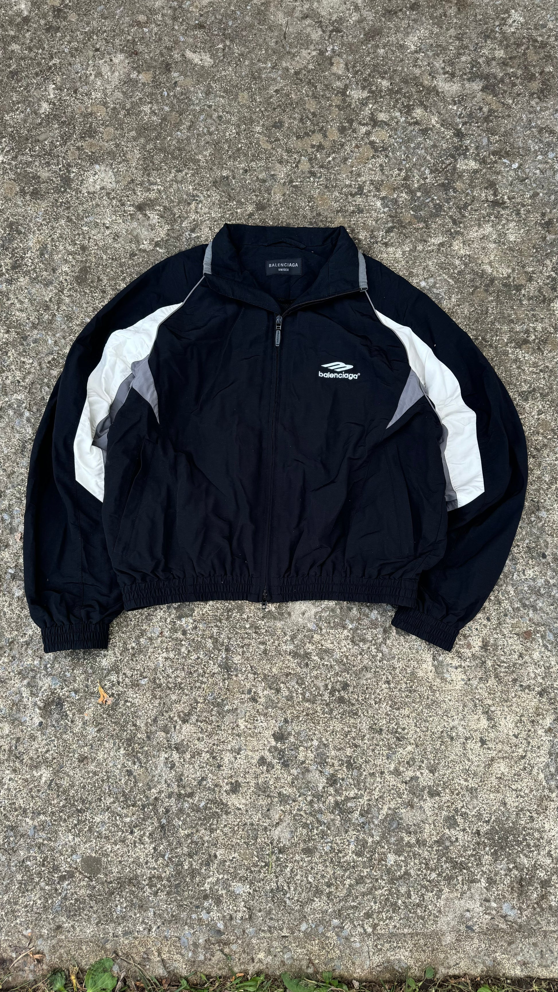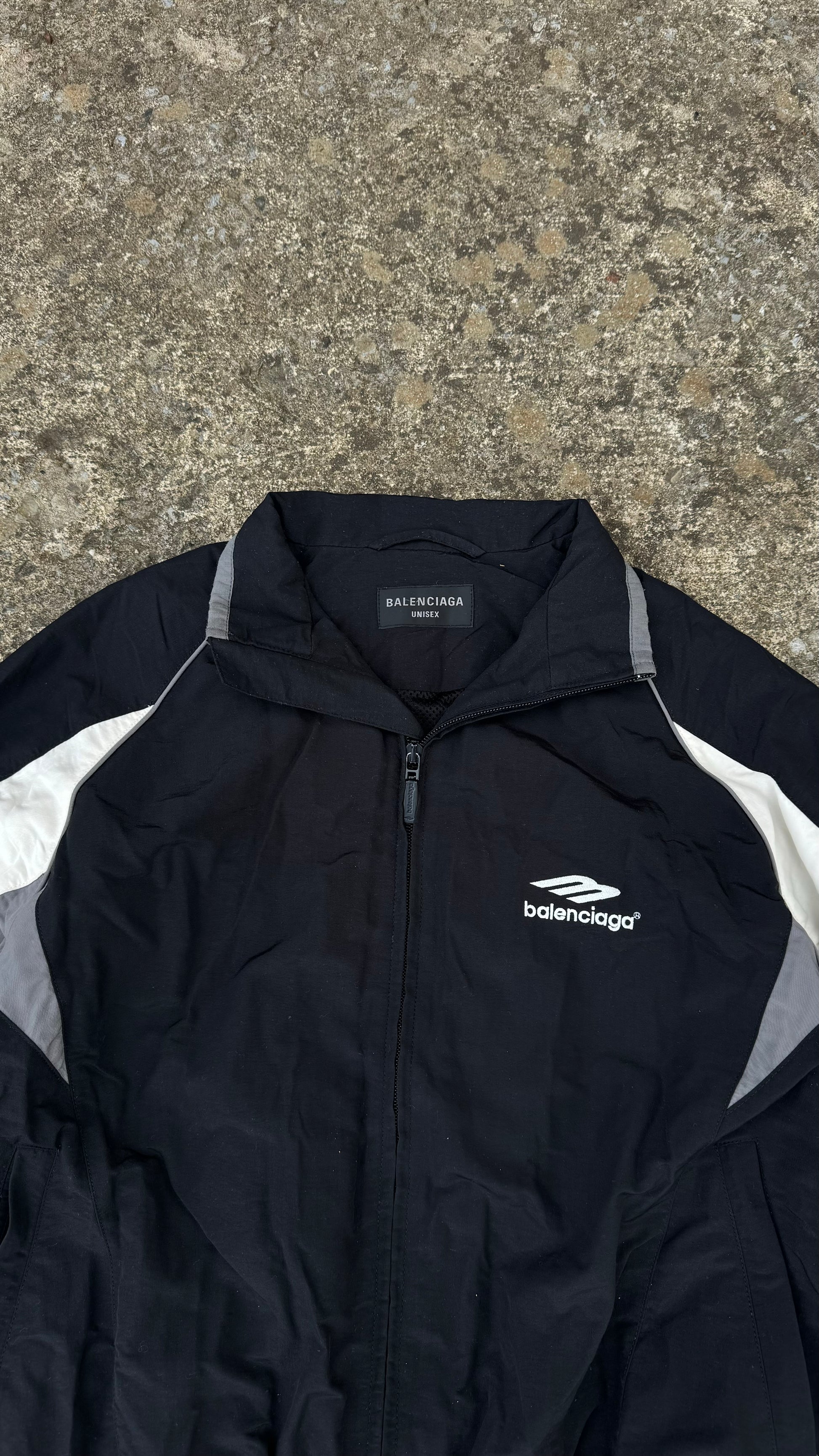 Insane Balenciaga track jacket in black with embroidered logo. Matching top to a full Balenciaga track suit, in basically perfect condition with no visible wear, damage, or staining.