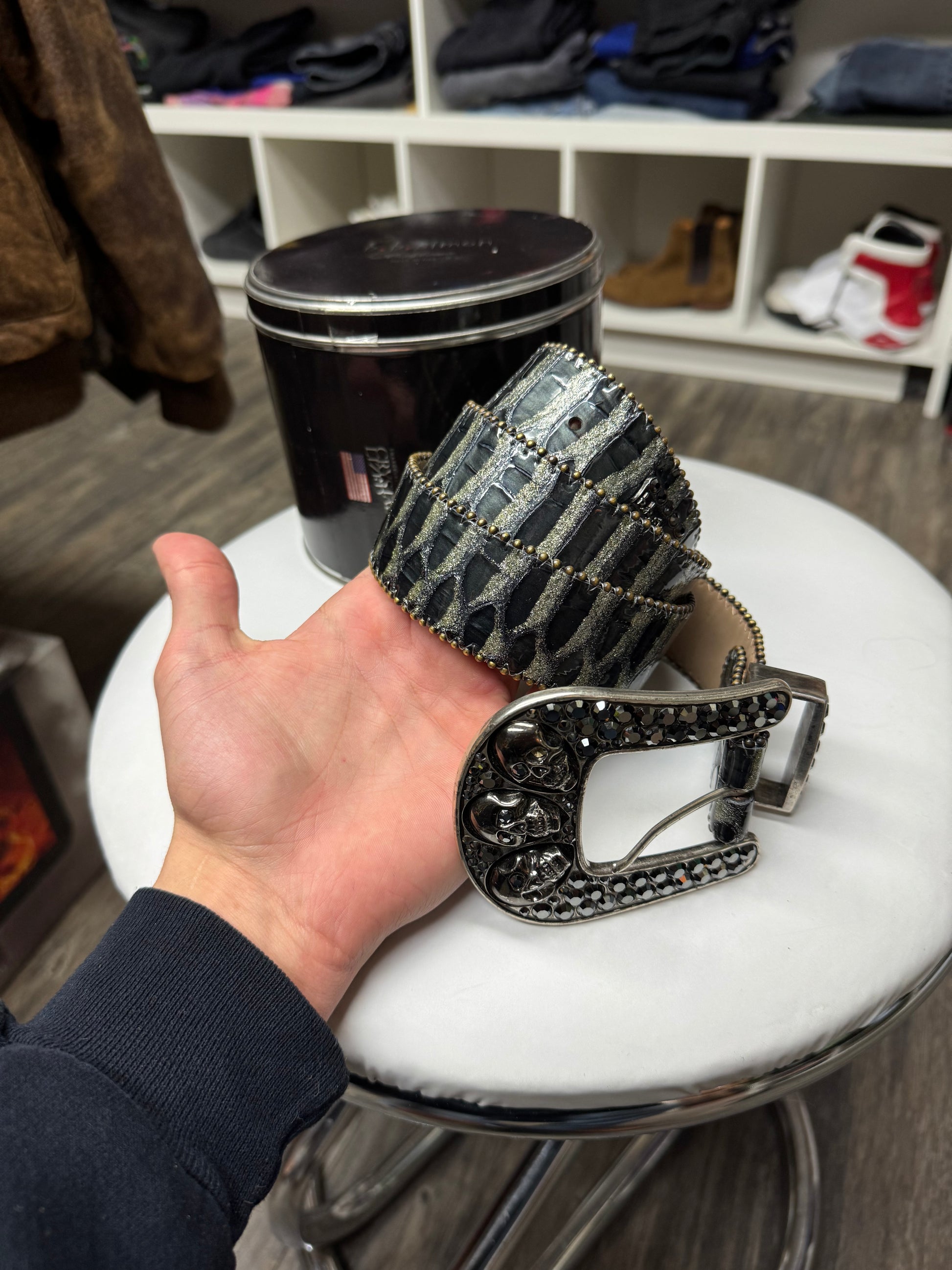 BB SIMON PYTHON LEATHER BLACK STUDS (30-36)