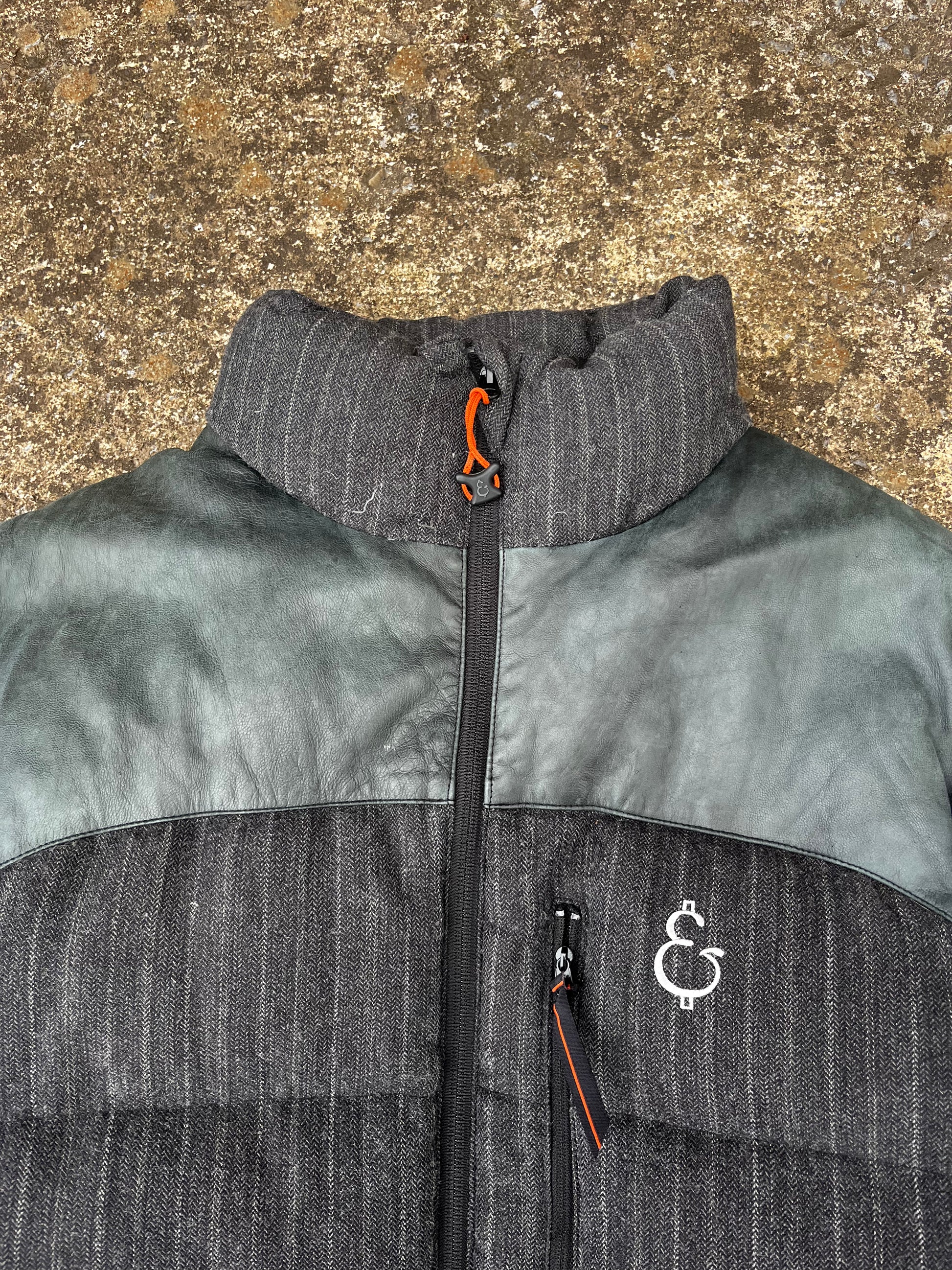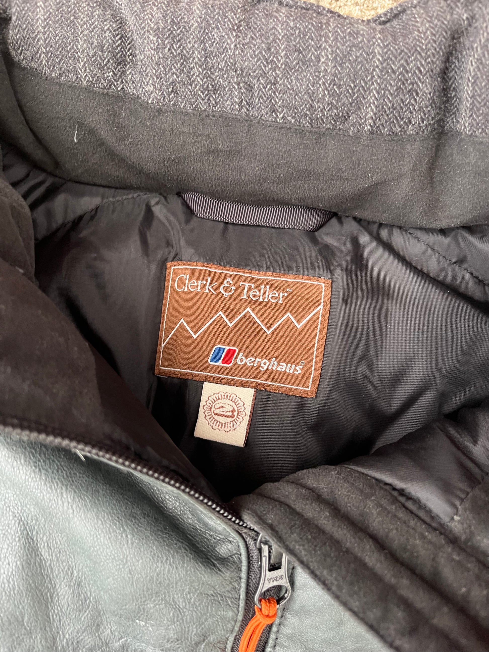 Insane puffer from Berghaus with genuine leather chest and back, and a wool outer layer. Extremely warm and comfortable, and in great condition. No stains, wear, or visible damage.