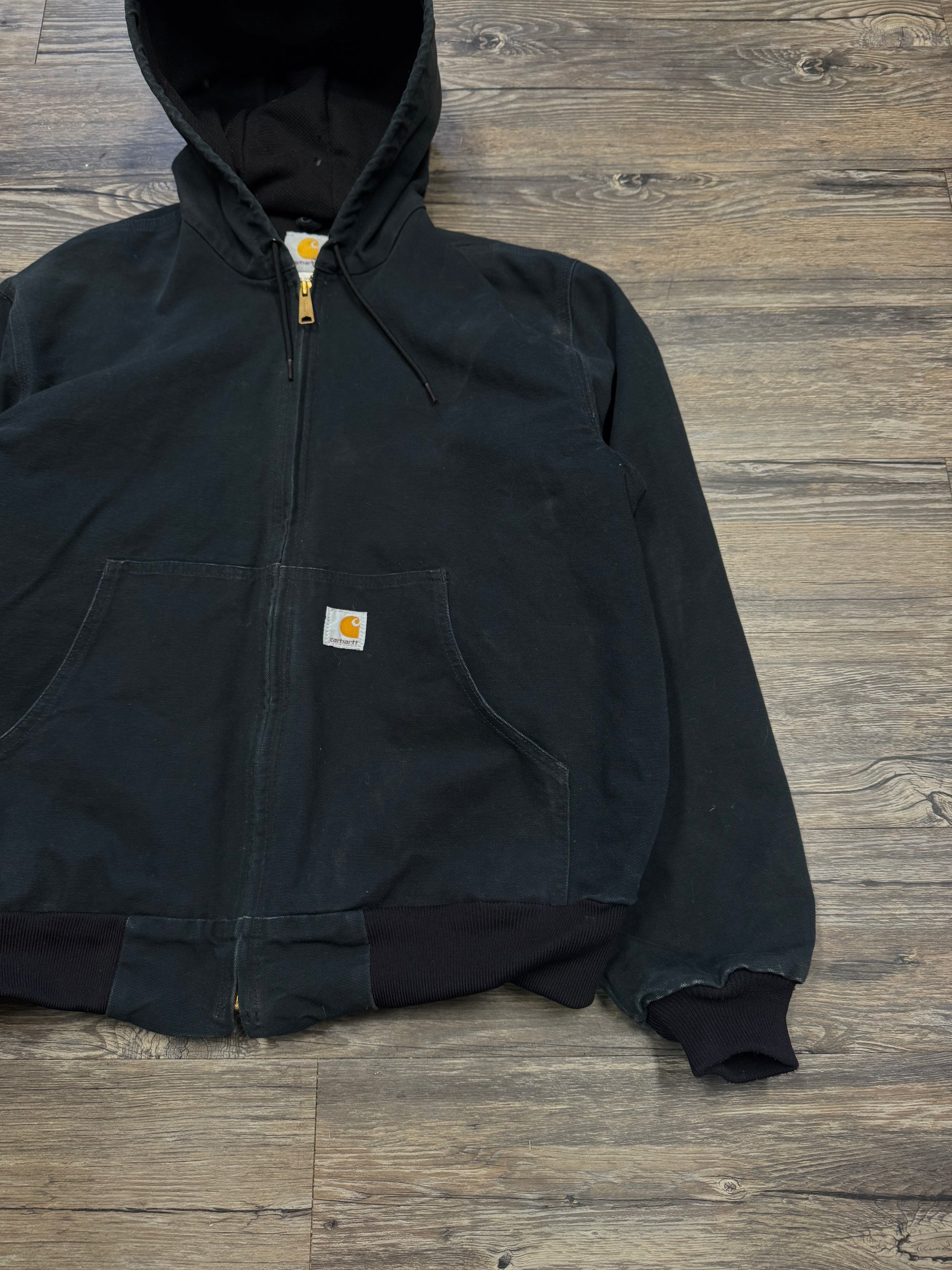 Sick, lined Carhartt jacket with a hood. Slight fading shown in pictures, but otherwise in great condition, no signs of damage or staining.
