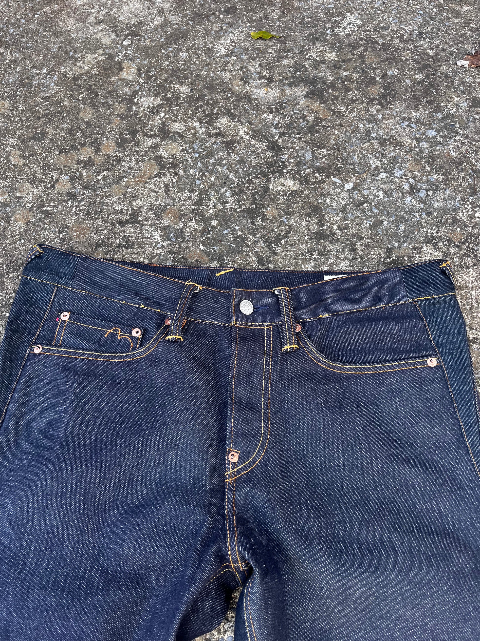 Sick pair of indigo dyed seagull wing denim. In amazing condition, no wear, damage, or stains visible.