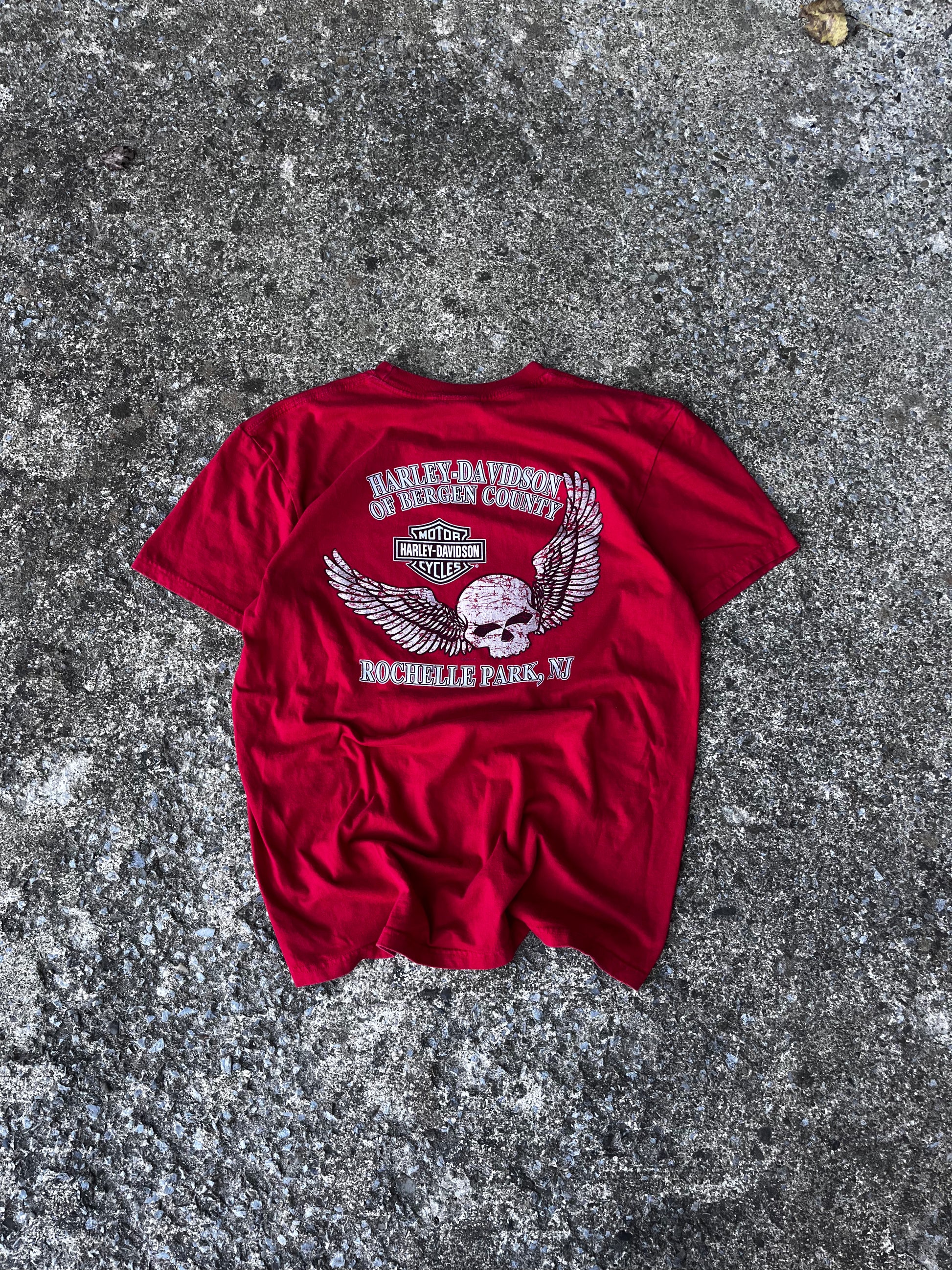 Sick classic logo Harley Davidson tee with back skull graphic. From the Rochelle Park, NY store, in basically perfect condition.