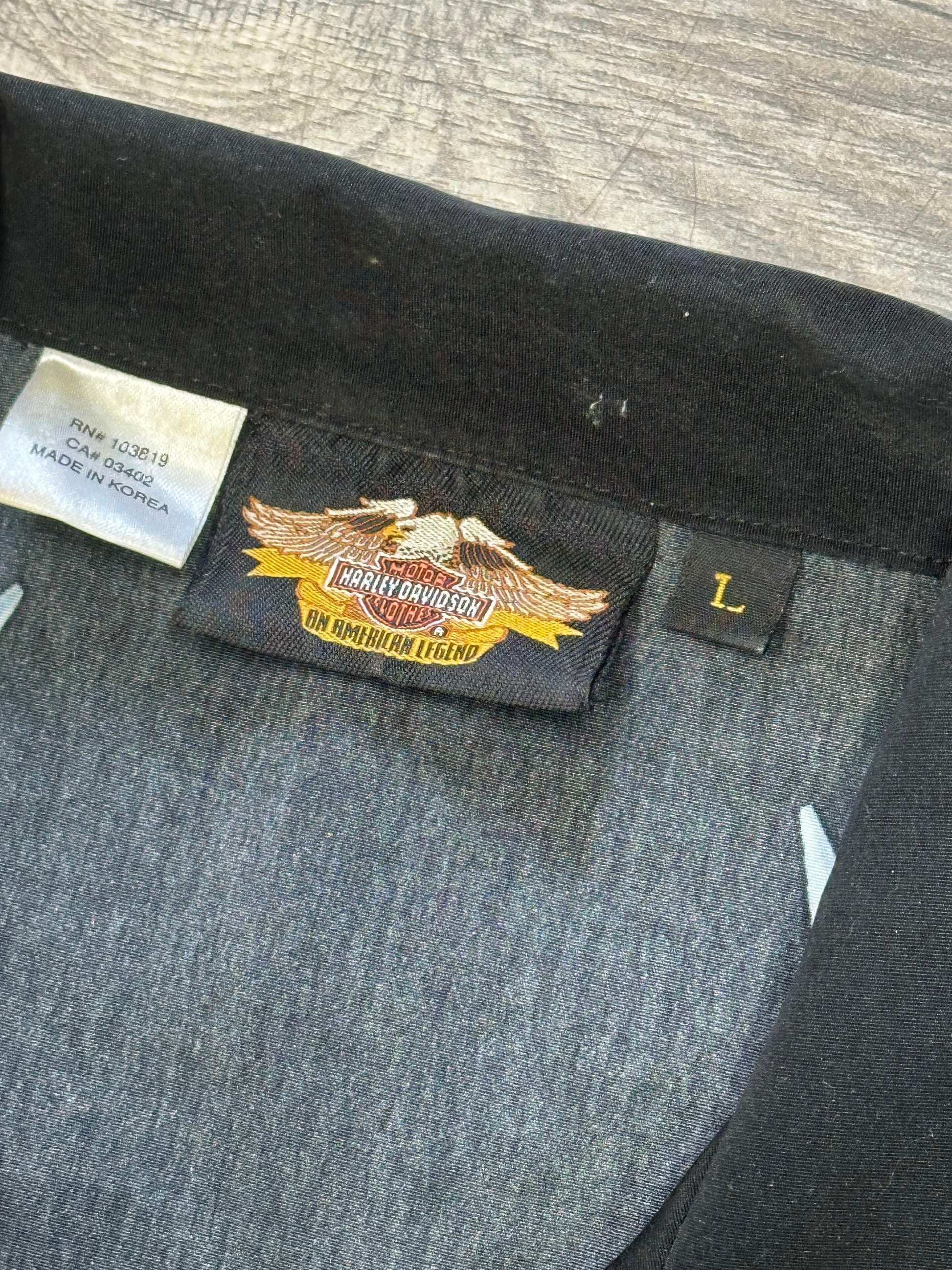 HARLEY DAVIDSON GRAPHIC SKULL BUTTON UP SHIRT (LARGE)