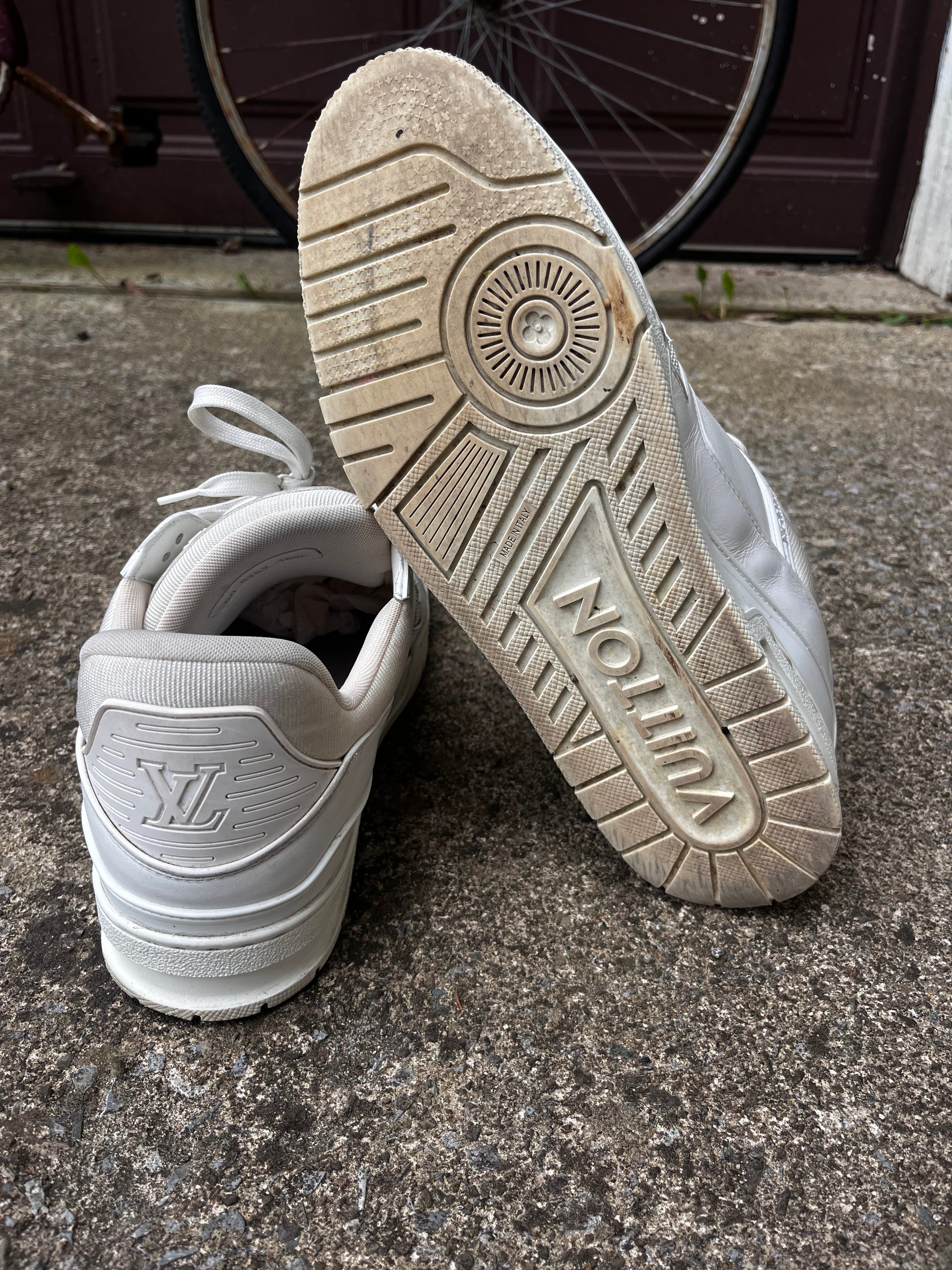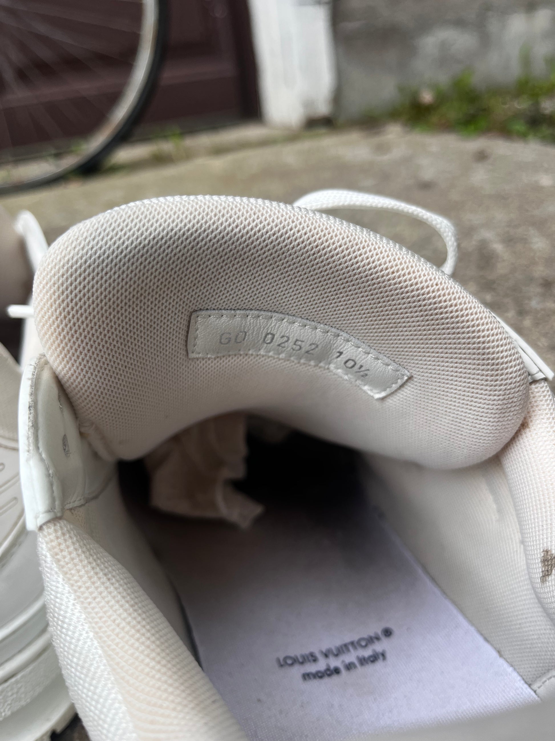 White on white LV trainers, with dustbags and box included. In great condition, with minimal visible wear.