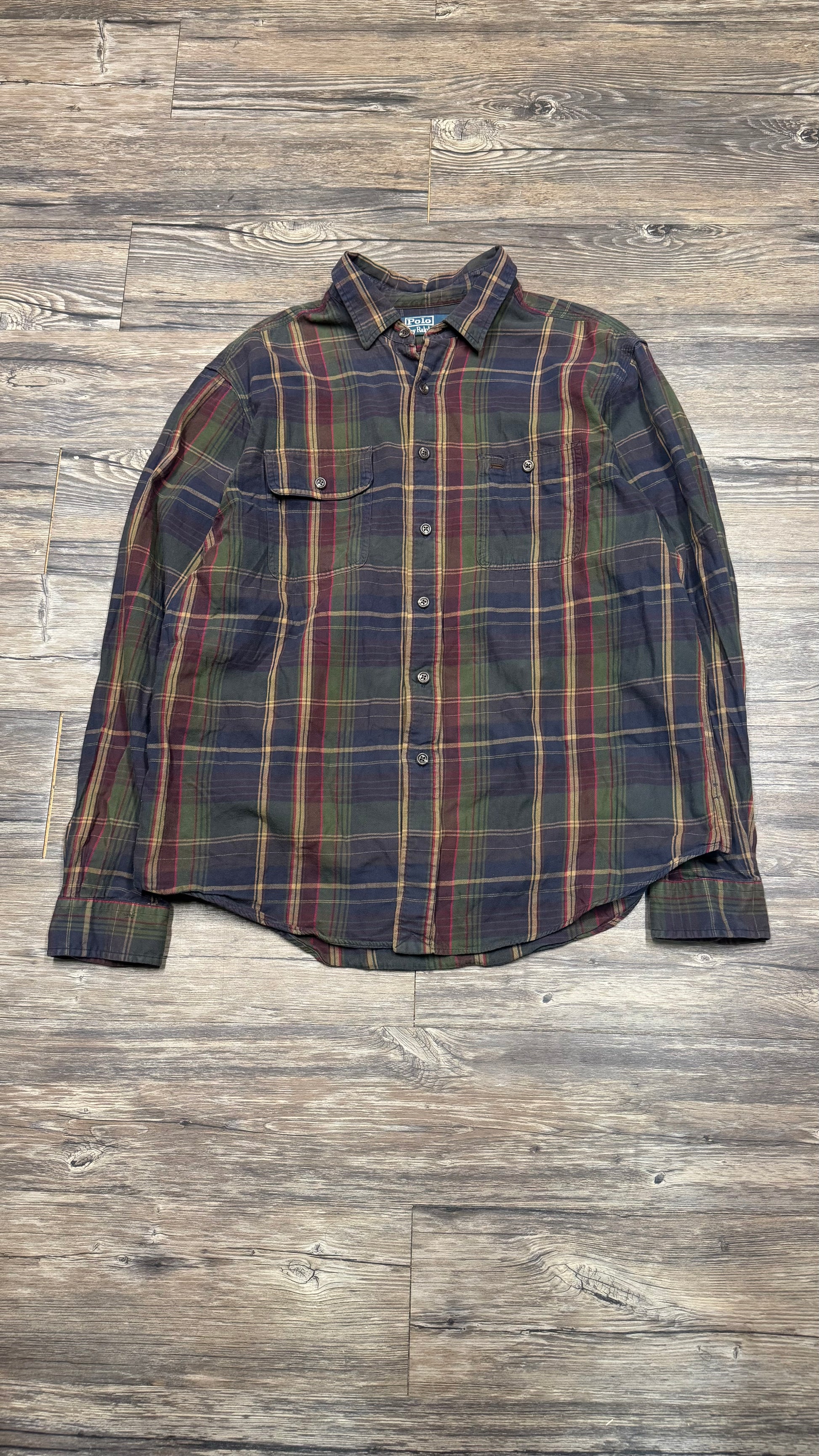 Sick vintage Polo by Ralph Lauren green, blue, and red button-up. In great condition, no stains, wear, or visible damage.