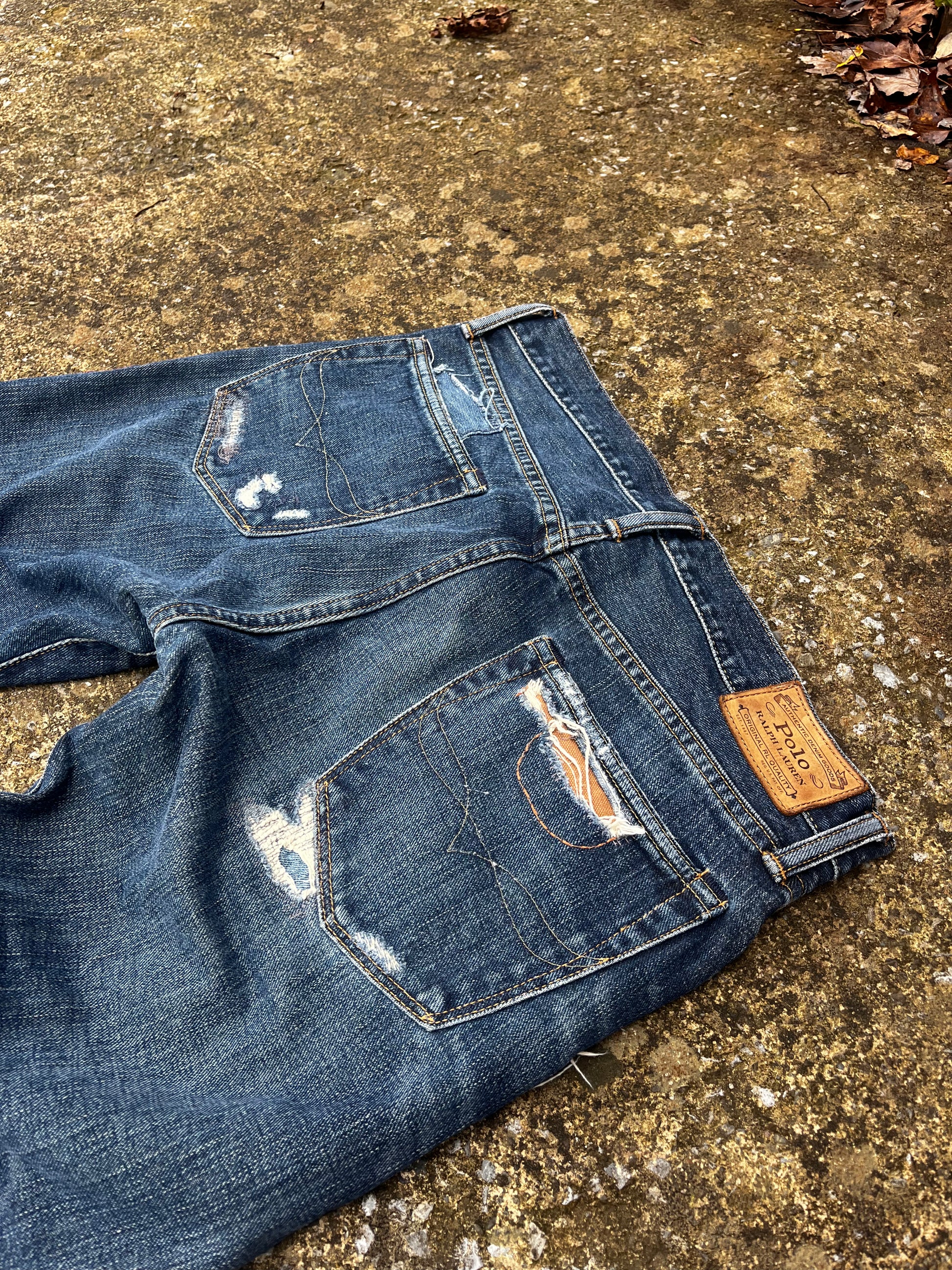 POLO RALPH LAUREN DISTRESSED & REPAIRED JEANS (32)
