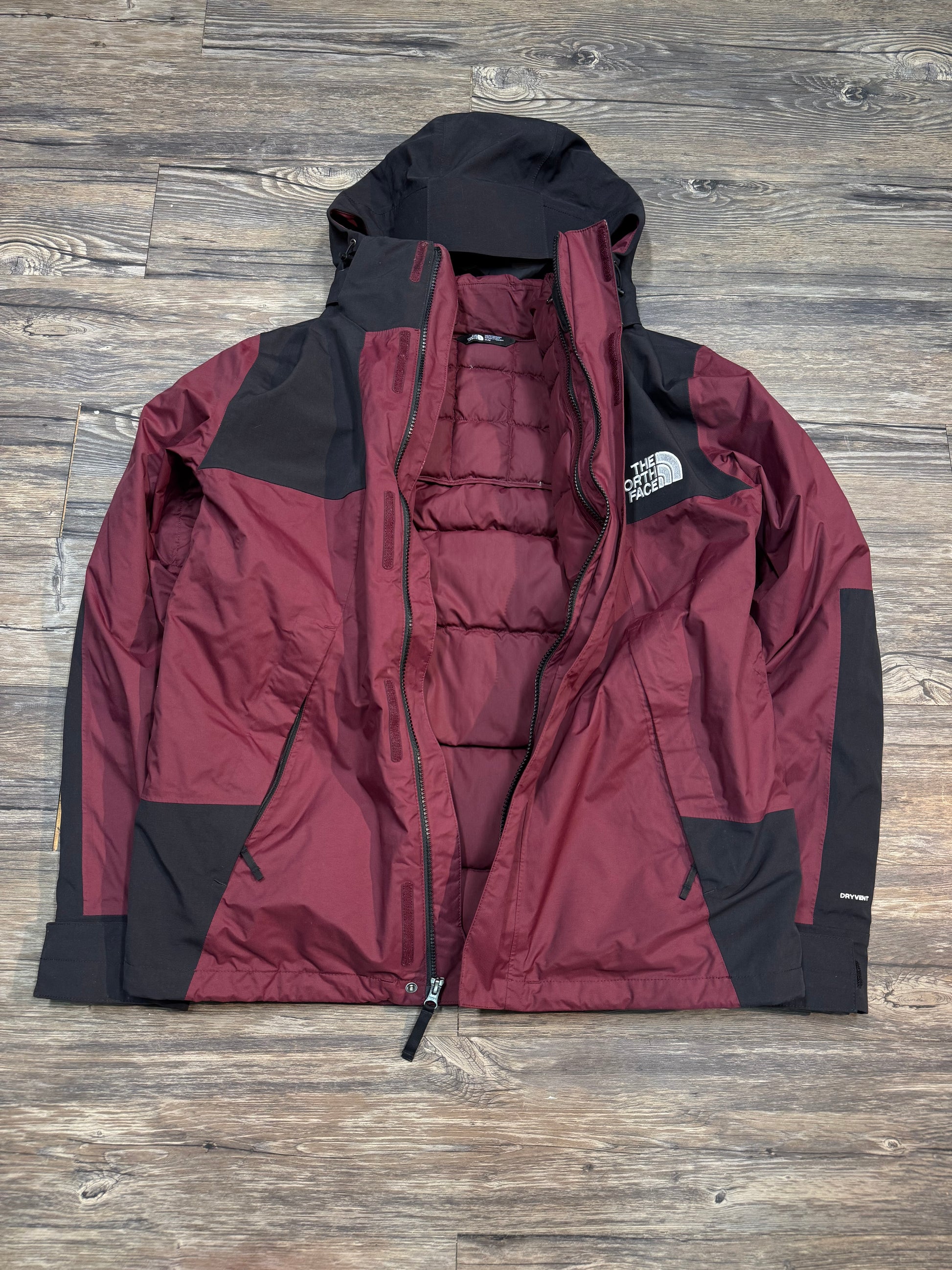 Sick the North Face deep red rain jacket with black panelling throughout. In amazing condition, no stains, ripping, or signs of wear.