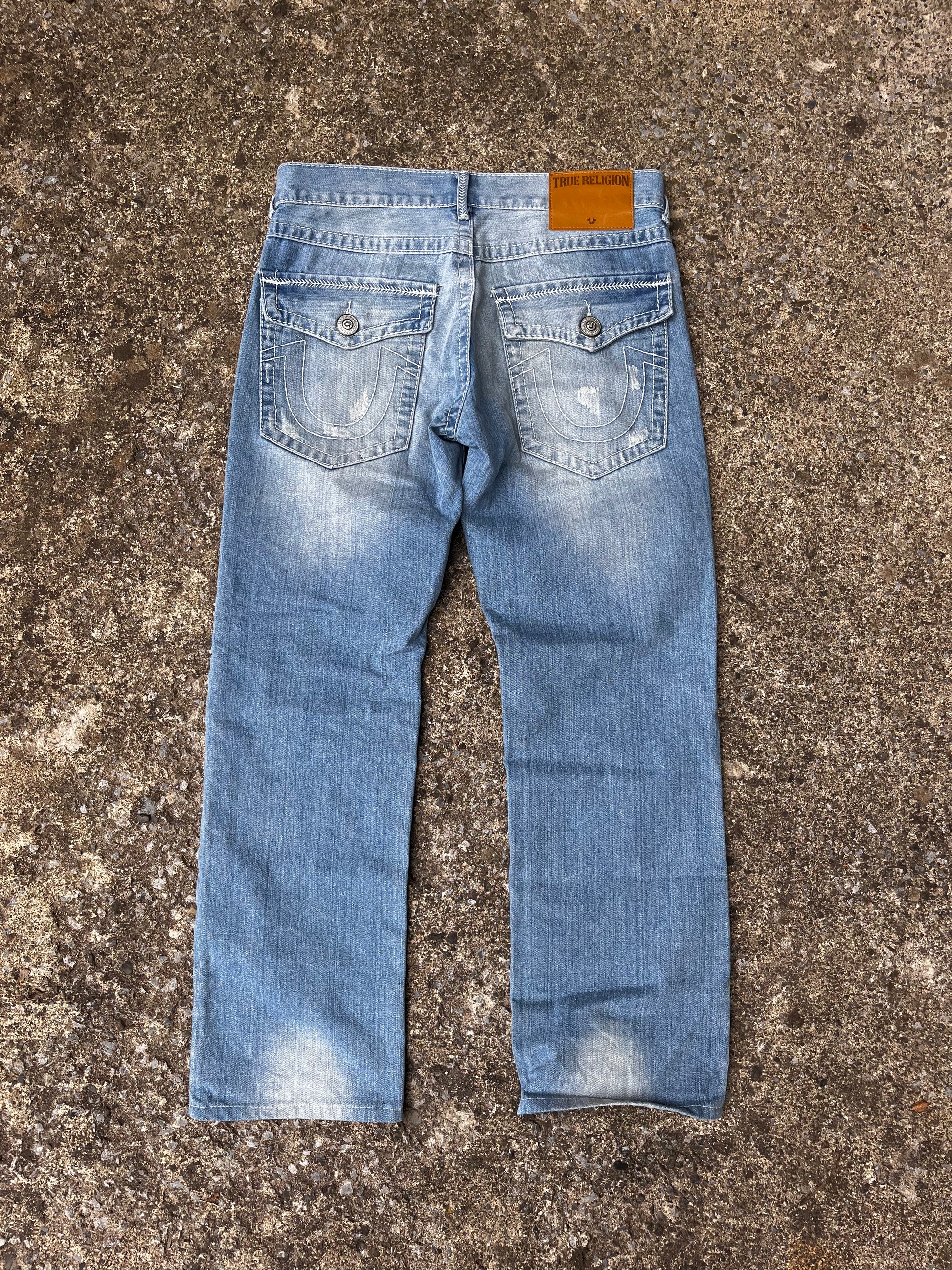 TRUE RELIGION DISTRESSED LIGHT WASH DENIM (32)