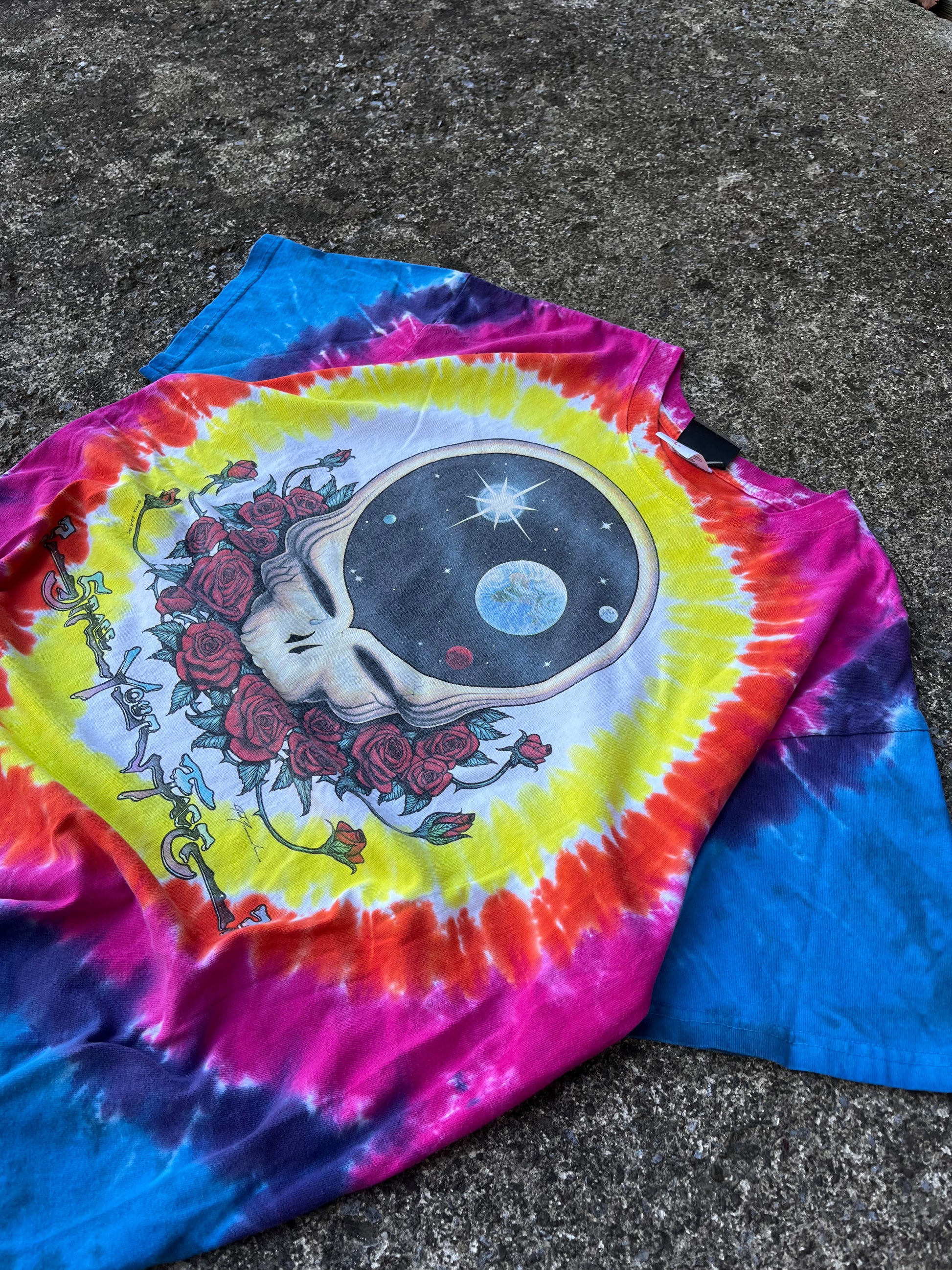Sick vintage Grateful Dead tee on a Liquid Blue tie-dye blank. Large skull and roses logo, in great condition with little to no visible wear or staining.