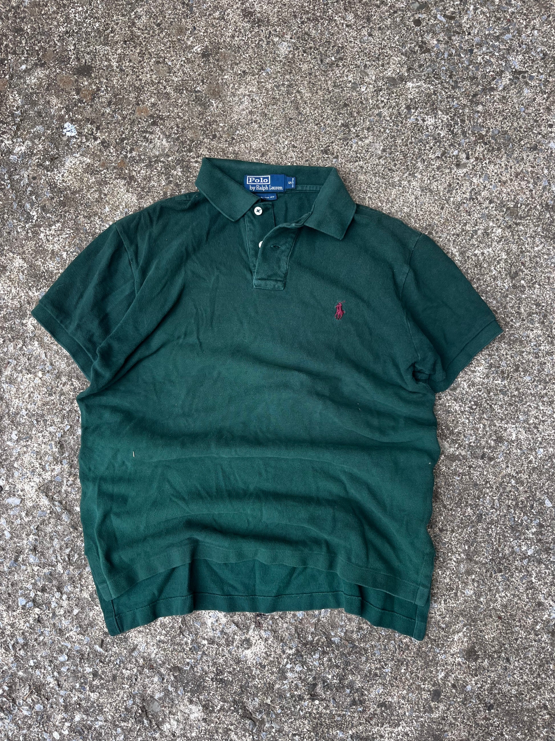 Vintage Ralph Lauren Polo in green with red chest logo. In great condition, no stains or wear visible.Β